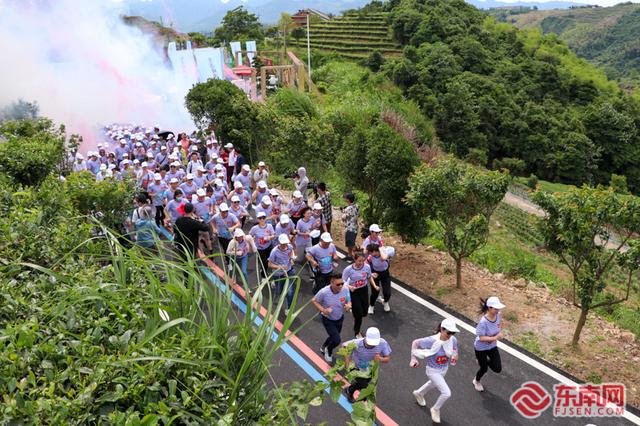 圖為游客們在茶山參加彩虹跑。東南網記者 葉伏國攝