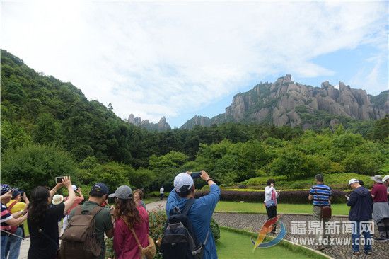 活動現場,太姥山撥開連日來的陰雨蒙蒙,在晴空下展露出毓秀鐘靈的絕美身姿。一批又一批游客帶著喜悅的笑容接踵而至。在夫妻峰廣場,游客們贊嘆自然神山壯麗之余,紛紛拿出手機合影打卡。一對又一對夫妻,在“夫妻峰”的見證下,用照片保存下甜蜜的愛情之旅。