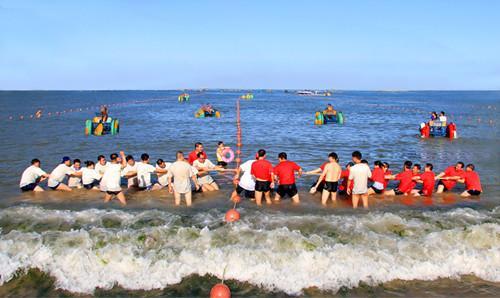 游玩嬉鬧忘我,身心盛宴。刺激的海上運動,總能讓人忘記現實的煩惱:海上飛艇劈波斬浪騰空躍起,這時游客的整顆心也起飛了;乘坐休閑漁船的人們,能夠感受迎面吹拂的海風,帶著絲絲咸味;還有水上步行球、旋轉太空氣球、水上蹦床、三柱蹦極、沙灘排球、沙灘摩托車、海濱垂釣、篝火晚會等活動,紛呈而至,令人目不暇接。